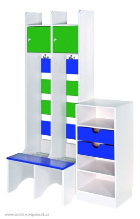 Šatničkami v kombinaci s modulovým nábytkem vybavujeme Mateřské školy.Rozsah sekcí šatniček upravíme dle požadavků a prostoru.